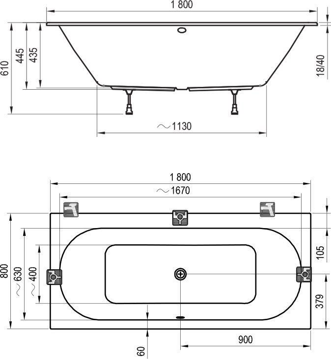 | C920000000 | 1800 x 800 | Badewanne CITY 180 x 80 weiss |