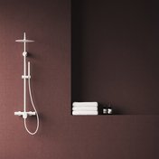 Das System macht auch aus der tagtäglichen Routine ein einzigartiges Erlebnis. Die optimal breite, drehbare, mit der Handbrause ergänzte Kopfdusche vereint in sich praktischen Zweck, Stil und Komfort. Dual-Duschsysteme können auch mit einer Thermostatarmatur ausgerüstet werden, die während des Bades für eine nichtschwankende Wassertemperatur sorgt.