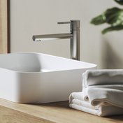 Die extra verlängerte Einlocharmatur passt perfekt zu Aufsatzwaschbecken. Die Kollektion der voll aus Edelstahl gefertigten Armaturen Nox ist eine Hommage an moderne Architektur und präzises Handwerk zu einem erschwinglichen Preis. Die feine Textur der Bedienelemente verleiht den Armaturen eine industrielle Eleganz, während der matte Metalleffekt der gebürsteten Oberflächen Reflexe mildert und ein Gefühl von Wärme, Natürlichkeit und Luxus schafft. Das Produkt ist in den Farben Edelstahl gebürstet, Schwarz matt und Graphit gebürstet erhältlich..