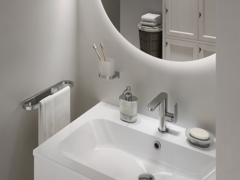 Der Handtuchhalter wird mit vier Dübeln und zwei Einstellklemmplatten aus Metall montiert. Der Schraubenabstand beträgt 15 mm. Das Montageset ist im Lieferumfang enthalten. Für eine einheitliche Lösung und ein harmonisches Badezimmerdesign empfehlen wir, es mit anderen Chrome II-Accessoires zu kombinieren. Für die äußerliche Reinigung empfehlen wir die Verwendung des Reinigungsmittels RAVAK Cleaner Chrome.