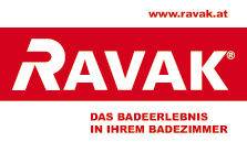 Farbkombinationen des Logos RAVAK: rot (C 10, M 100, Y 100, K 0; Pantone 186 C) und weiß (C0, M0, Y0, K0).