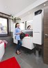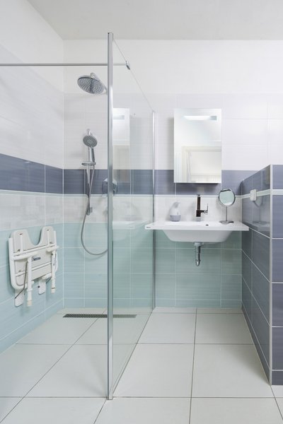Dank Beinfraktur musste die ältere Dame aus dem ersten Stockwerk in das Erdgeschoss des Hauses umziehen und es war notwendig das entsprechende Hinterland mit barrierefreiem Badezimmer zu errichten. Die Familie fand Inspiration im designmäßig abgestimmten Konzept Chrome. Und so wurde das Badezimmer mit Badewanne mit Mischarmatur mit praktischem kippbarem Auslauf eingerichtet, der beim Baden zur Wand gekippt werden kann und in den Badebereich nicht eingreift. Das Waschbecken mit Kasten und die Duschecke stammen aus dem gleichen Konzept. "Obwohl ich in die Nische nach dem Kleiderschrank die Duschecke 100 x 100 cm platzieren wollte, waren es letztendlich 96 x 100 cm. Ravak war sehr entgegenkommend und verkleinerte die Tür Chrome auf die erforderlichen Abmessungen. Sie versicherten mich, dass es sich um einen üblichen Kundenservice handelt, dass die Handwerker heute manchmal einfach nicht ganz genaus sind," erklärt die Eigentümerin. Um den Komfort und die Sicherheit zu erhöhen, installierten wir für die ältere Dame auch den kippbaren Sitz Ovo, der ihr beim Duschen sichere Entspannung bietet.