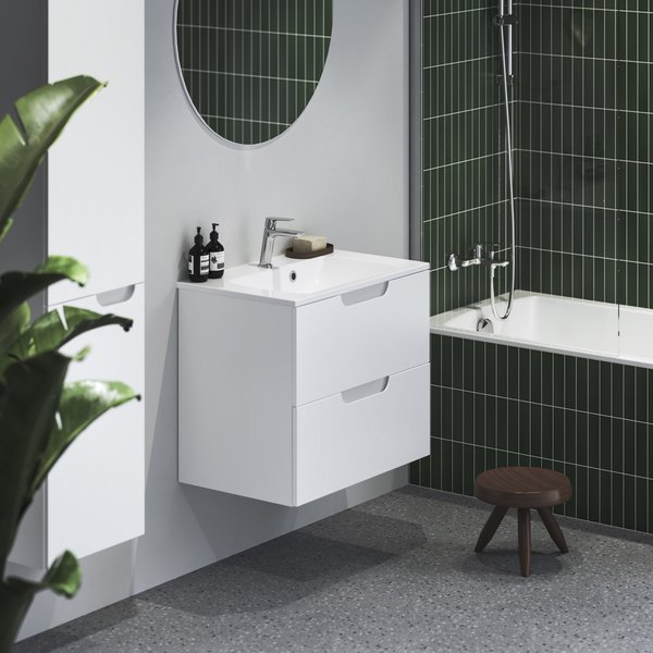 In die Badezimmermöbel Classic II fügte der Designer die Idee der Schlichtheit und der Zweckdienlichkeit in ihrer essentiellen Gestalt ein. Die sparsamen äußeren Linien werden durch den leicht ausgesparten Griff ovaler Form im Geiste des freundlichen Minimalismus hervorgehoben.