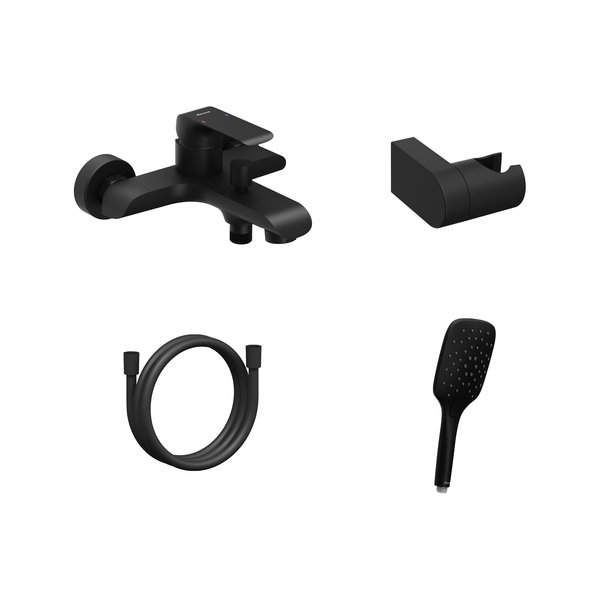 | X07S114 | FL 022.20BLM.+S Wannen-Wandarmatur Flat mit Duschset, Schwarz matt |