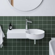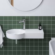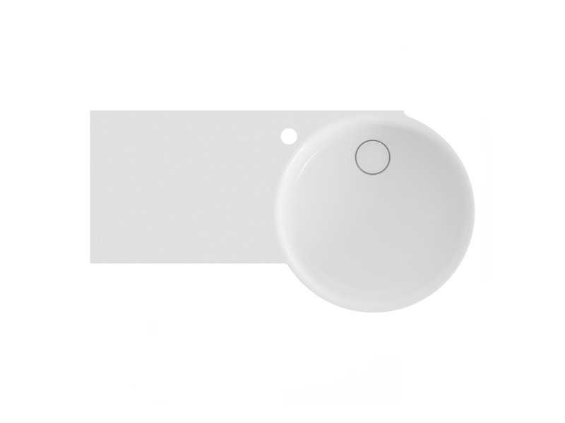 ARC-Waschbecken 83/43 L/R mit Ablagefläche auf der linken oder rechten Seite. Das Waschbecken verfügt über keinen Überlauf – aus diesem Grund ist eine feste Ablaufgarnitur einzubauen, um ein Überlaufen zu verhindern. Das Waschbecken ist mit einer Bohrung für eine Einlocharmatur ausgestattet.