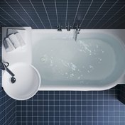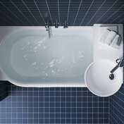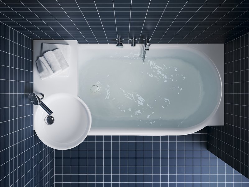 Die Montage des Waschbeckens erfolgt entweder separat direkt an der Wand oder über der ARC-Badewanne 150×75 / 160×75 in rechter oder linker Ausführung – jeweils in der entgegengesetzten Variante zum Waschbecken. Bei der Installation des Waschbeckens über der Badewanne muss ein spezieller kombinierter ARC-Siphon verwendet werden. So kann der Abfluss des Waschbeckens an das Abflusssystem der Badewanne angeschlossen werden. Das Abflussrohr des Waschbeckens verläuft durch den Wannenrand und ist hinter der Acrylabdeckung verborgen.