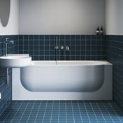 Der spezielle kombinierte ARC-Siphon leitet das Wasser aus dem Waschbecken elegant direkt in den Badewannenabfluss. Alle Leitungen sind hinter einer Acrylverkleidung verborgen, sodass das Badezimmer stets aufgeräumt und störungsfrei wirkt – auch beim Baden.