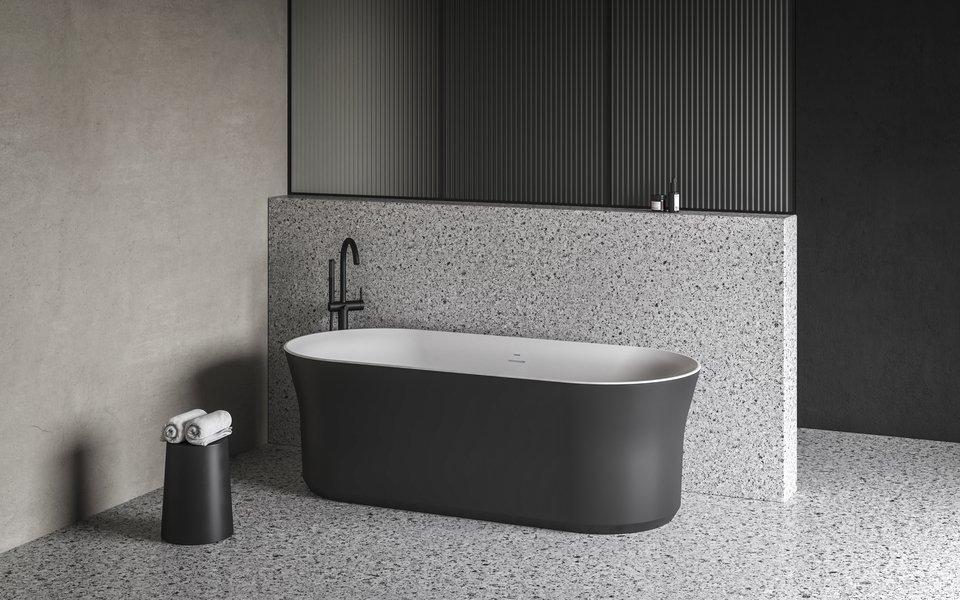 La baignoire Freedom Wall à fixer au mur est également disponible avec une coque noire.