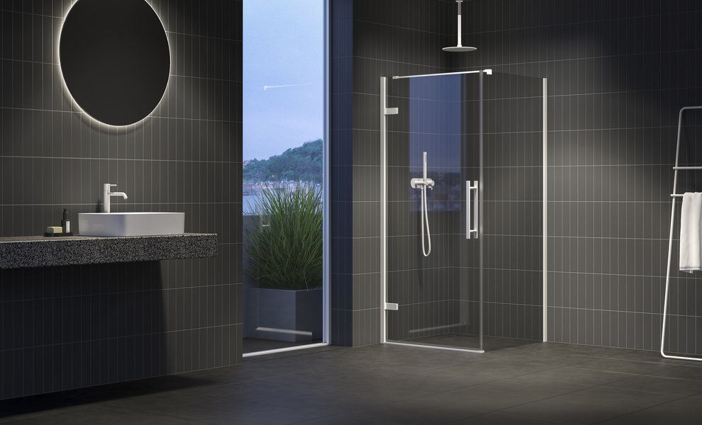 Créez une cabine de douche carrée ou rectangulaire en combinant la porte de douche avec une paroi solide. En outre, vous pouvez facilement placer une vasque ou une machine à laver à côté de la paroi solide. La forme rectangulaire de la cabine de douche permet de prendre une douche de manière confortable. Réfléchissez si vous ne préféreriez pas, par exemple, les dimensions de 80 x 100 cm au lieu de 90 x 90 cm. Une telle cabine de douche occupera la même surface, mais la disposition rectangulaire en augmentera l’utilité.