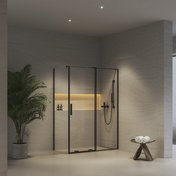 Combinez une porte de douche avec une paroi fixe et créez votre espace de douche d'une dimension allant de 80 x 100 à 90 x 140 cm.