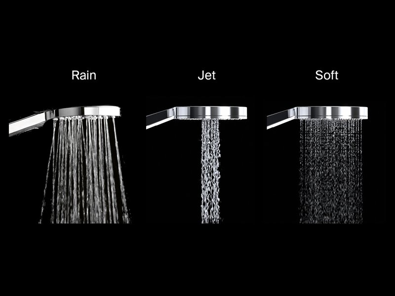 - Flexible en plastique résistant de 150 cm, pomme de douche plate avec trois fonctions d'un diamètre de 118 mm, tige avec support coulissant de la douche d'une longueur de 63,5 cm