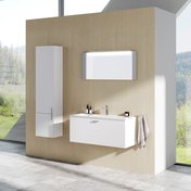 Le style des meubles sous lavabo et des colonnes latérales est parfaitement adapté pour accueillir les lavabos Clear du même nom avec qui ils forment un tout fonctionnel universel dont le style ne repose sur aucune salle de bains.