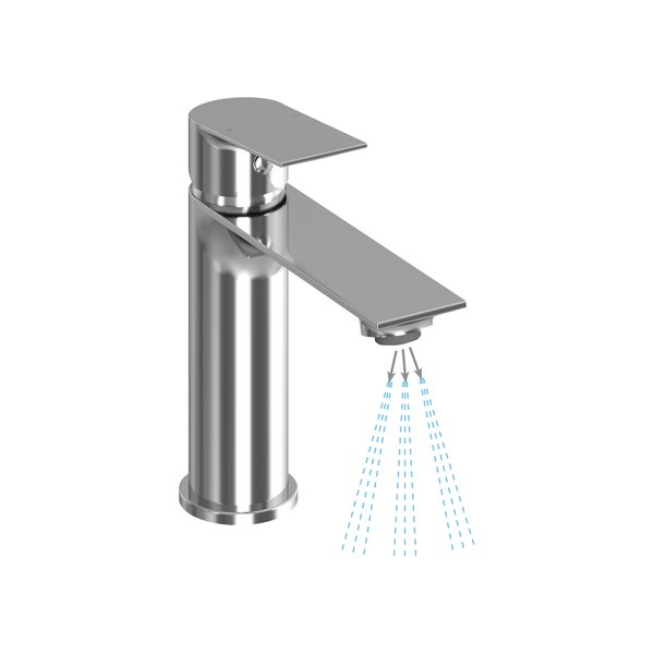 À l’intérieur du mitigeur se trouve un aérateur sophistiqué avec la fonction EcoFlow. Le débit est limité à 4,5 l par minute et enrichi en air. Vous ne le remarquerez probablement pas, mais cela aura un effet sur votre consommation d’eau, qui sera inférieure à celle avec un mitigeur ordinaire.