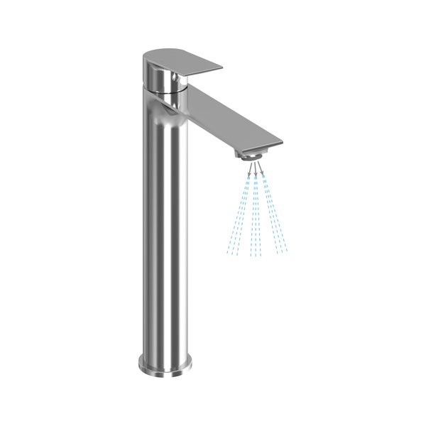 À l’intérieur du mitigeur se trouve un aérateur sophistiqué avec la fonction EcoFlow. Le débit est limité à 4,5 l par minute et enrichi en air. Vous ne le remarquerez probablement pas, mais cela aura un effet sur votre consommation d’eau, qui sera inférieure à celle avec un mitigeur ordinaire.