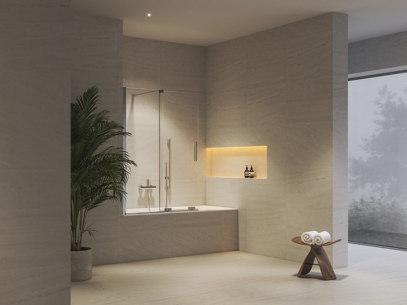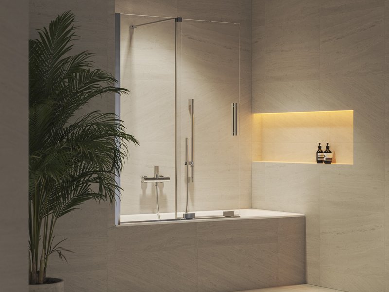La paroi de baignoire se compose d’un profil de réglage vertical, d’un élément fixe et d’un second élément coulissant. L’élément coulissant se déplace à l’aide de roulettes sur un rail placé sur le bord de la baignoire. Les versions d’entrée à gauche ou à droite peuvent être obtenues en faisant pivoter verticalement la paroi de 180° lors de l’installation. La paroi de baignoire peut être installée sur des baignoires rectangulaires (City, City Slim, Formy 01, Formy 01 Slim, Formy 02, Formy 02 Slim, 10°, 10° Slim, Chrome, Chrome Slim, Classic II, Classic Slim, Campanula II, Vanda II) ou sur toute baignoire rectangulaire classique avec un rebord supérieur droit.