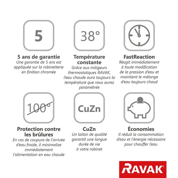 - Pour toutes les cabines de douches RAVAK - pour une température constante de l'eau sous la douche